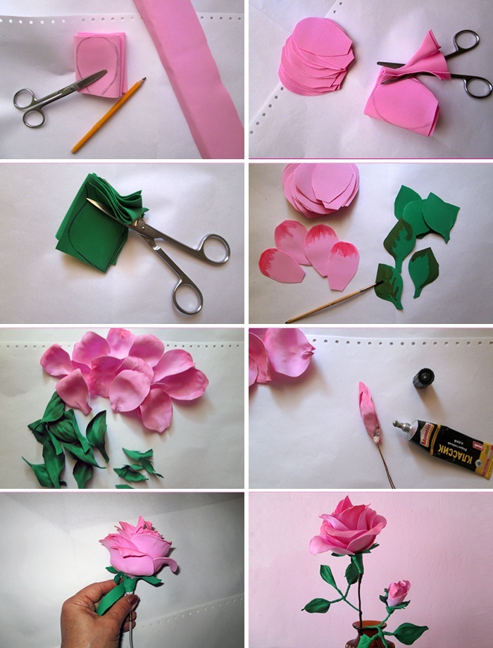 Роза из фоамирана своими руками: мастер-класс, шаблон, выкройка, фото. Как сделать простую, маленькую, ростовую, интерьерную, пионовидную, сине-белую, Инь-Янь, красную, черно-белую, розовую, английскую розу, бутон розы, букет роз из фоамирана: пошаговая схема