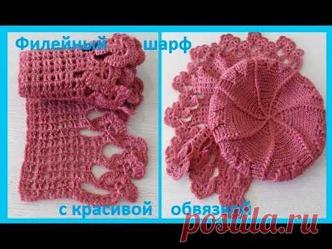 Филейный шарф с красивой обвязкой,crochet scarf ( шаль №91)