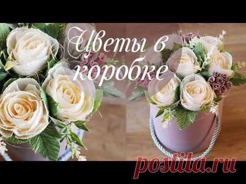 Букет в шляпной коробке. Цветы из бумаги в коробке. Собираем букет роз в коробочке.