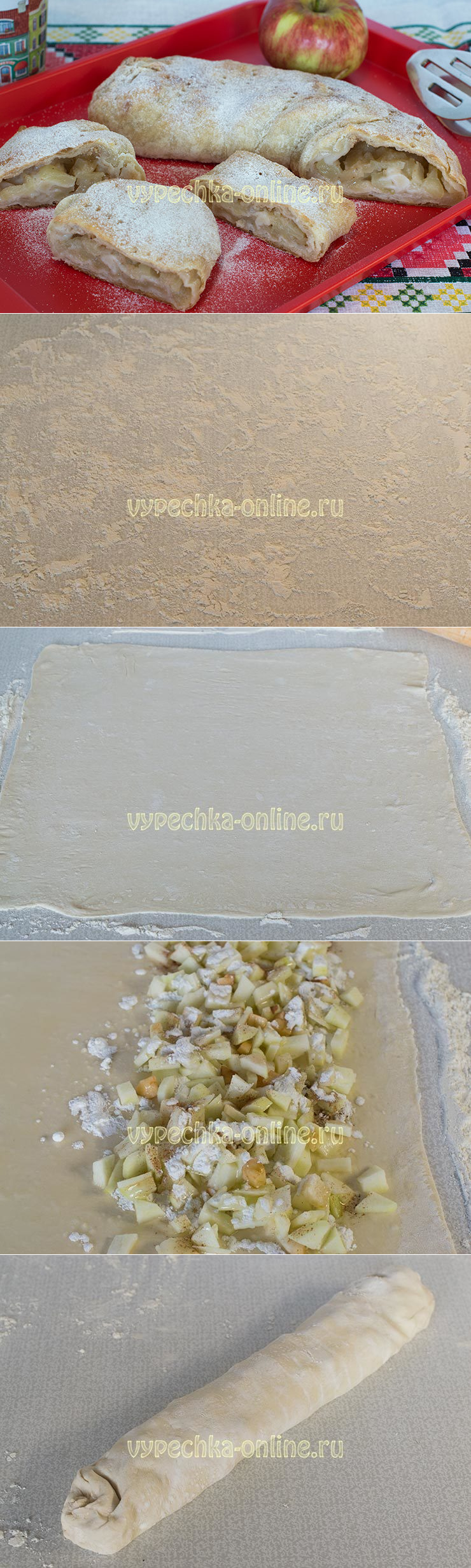 Штрудель яблочный из слоеного теста пошаговый рецепт с фото