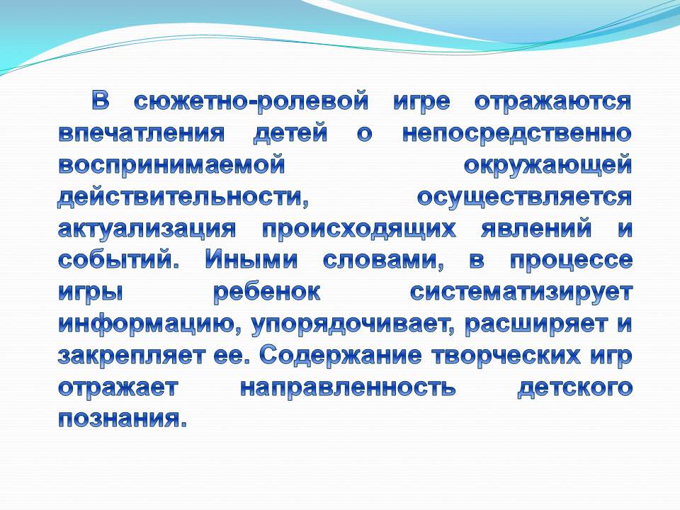 В сюжетно-ролевой игре отражаются впечатления детей о непосредственно - Презентация 230965-17