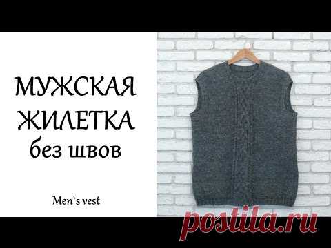 Мужской жилет без швов с араном. Вязание спицами. Male waistcoat without seams with aran. Knitting