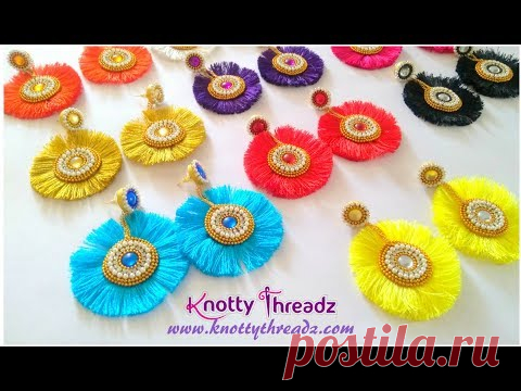 How to Make Beautiful Silk Thread Tassel Earrings with Quilled Studs | DIY | www.knottythreadz.com