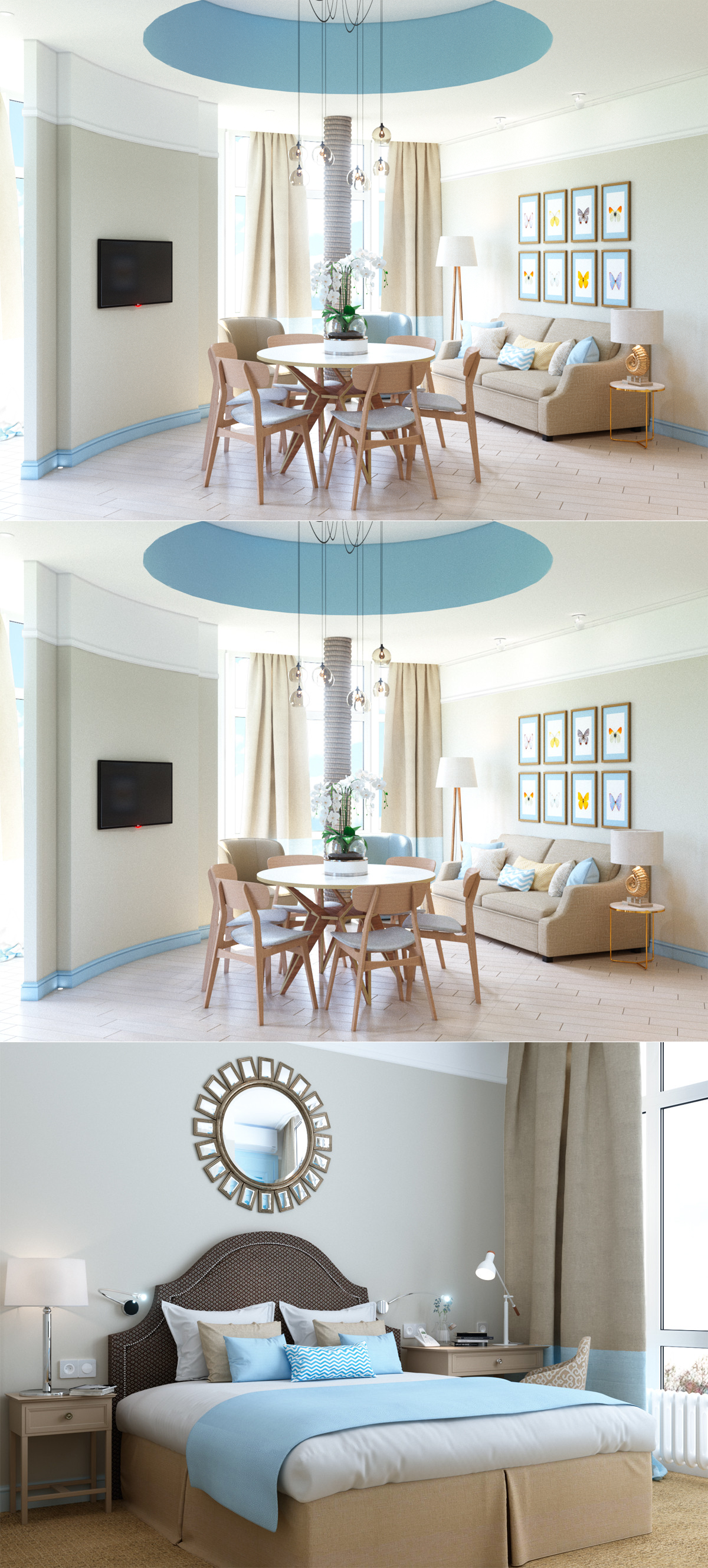Апартаменты у моря: три комнаты в бежевых тонах – Roomble.com