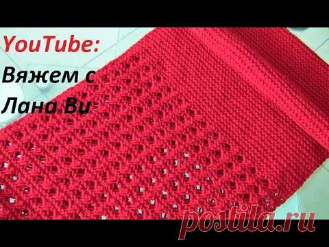 Вяжем шарф-снуд спицами, 50/50 - АЖУРНЫЙ узор и ПЛАТОЧНАЯ вязка. Шарф-снуд в 2 оборота