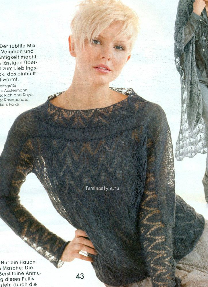 Ажурный пуловер дымчатого цвета связанный спицами / Рукоделие / Домоводство / Женские секреты / Женский стиль