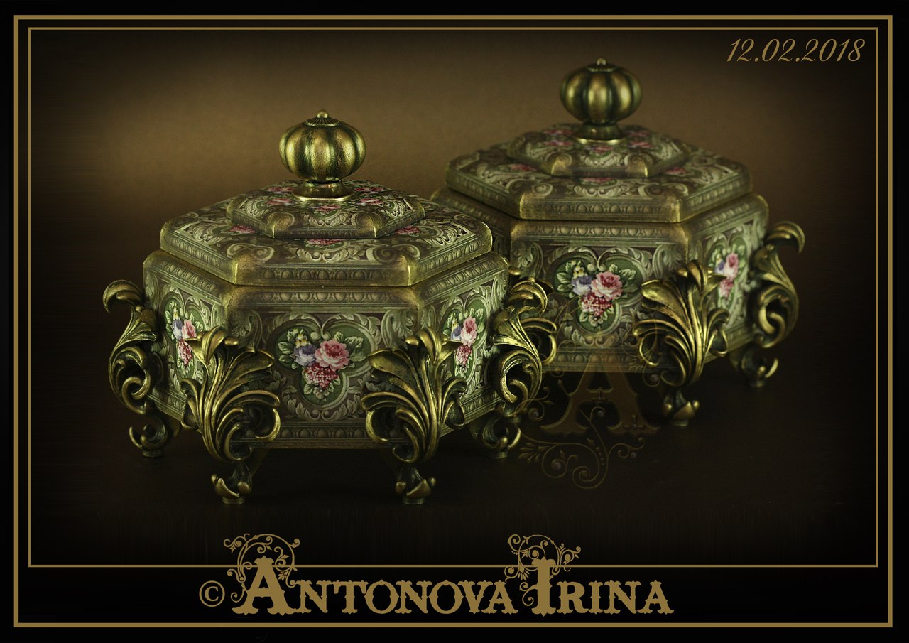 Шкатулка с авторским декором, ножка на угол шестигранной шкатулки.