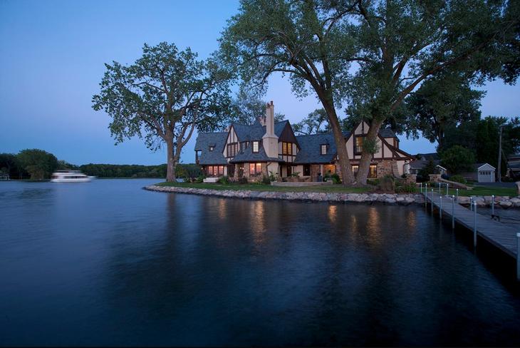 Классический двухэтажный дом в английском стиле расположенный на полуострове на берегу озера Этот классический дом в английском стиле расположен на полуострове между двумя заливами на озере Меннетонка, штат Миннеаполис, США. Владельцы хотели убрать существующий старый дом и построить новую ре...