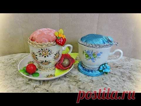 Чашка-игольница. Мастер-класс с подробным описанием работы.