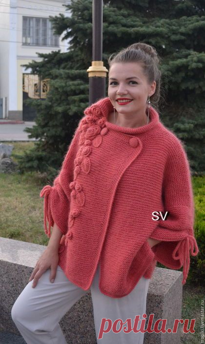 Купить или заказать Жакет вязаный 'Водопад из роз' в интернет-магазине на Ярмарке Мастеров. Авторский жакет по мотивам пальто 'Водопад из роз'. Великолепный вариант для прохладных дней. Мягкий , уютный, красивый. Очень оригинальный воротник и 'высыпающиеся из него розы' Размер оверсайз. По цвету при заказе уточняйте наличие.