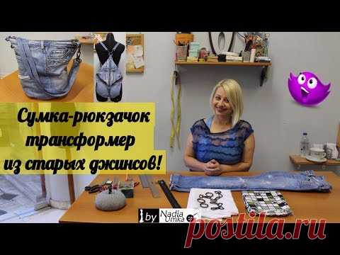 Шьём женскую сумку-рюкзак трансформер для города из старых джинсов! by Nadia Umka !