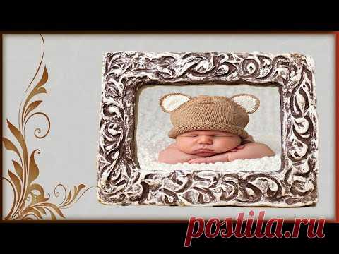 Красивейшая объемная техника. Фоторамка из картона своими руками под фото любого размера. Декор шпатлевкой. Фоторамка с метрикой малыша. Удивите подарком!:ht...