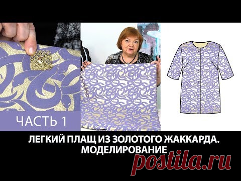 Моделирование раскрой примерка плаща простого кроя из золотого жаккарда с фиолетовыми змеями Часть 1