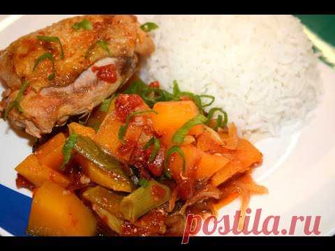 Рецепт для всех видов мультиварок скороварок и сковородок))) Куриные бёдра - 700 г Тыква, нарезанная кубиками- 500 г Томаты в собстенном соку - 400 г Зелёный...