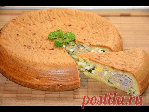 Супер простой пирог... Холодный или горячий... Время приготовления 1 час Программа "Выпечка" Начинка: Лук зеленый - 3-4 Рыбная консерва - банка(200г) Яйца ва...