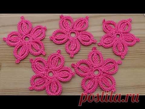 Вязание ЦВЕТКА. Урок вязания крючком простого цветка. how to crochet a flower