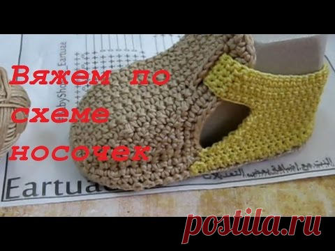МК вязание крючком пинетки-сандалики. Вяжем носочную часть.