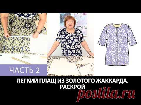Моделирование раскрой примерка плаща простого кроя из золотого жаккарда с фиолетовыми змеями Часть 2