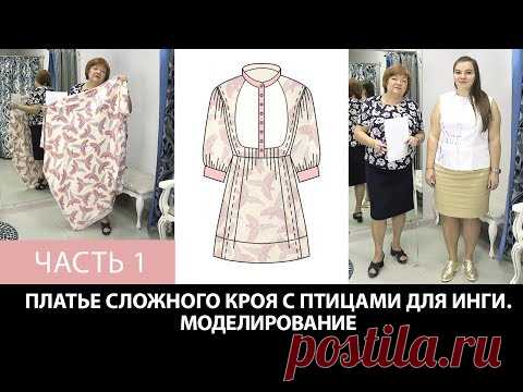 Платье с птицами на Ингу Как сделать сложную выкройку платья Моделирование Раскрой Примерка Часть 1