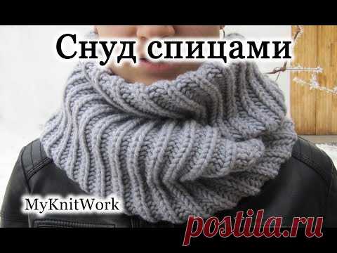 Вяжем спицами Снуд, круговой шарф. Снуд английской резинкой. Knitting needles LIC, circular scarf.
