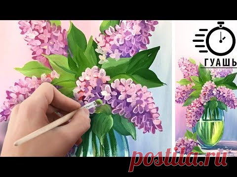 Гуашь БУКЕТ "Сирень в вазе"! ТАЙМЛАПС! Выбери свой урок рисования. Уроки для начинающих гуашью!