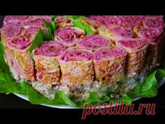 Рецепт праздничного салата, который не только украсит Ваш стол, но и получается очень вкусным! Продукты для приготовления: 1. Блины - 5 шт. 2. Свекла (отварн...