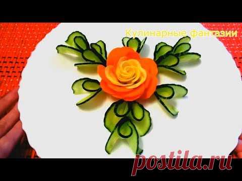 Самый простой цветок из моркови и украшения из огурца. Карвинг. Украшения блюд и салатов