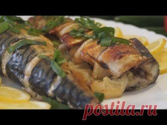 Запеченная скумбрия с луком и лимоном. Самый Вкусный и Простой рецепт!
