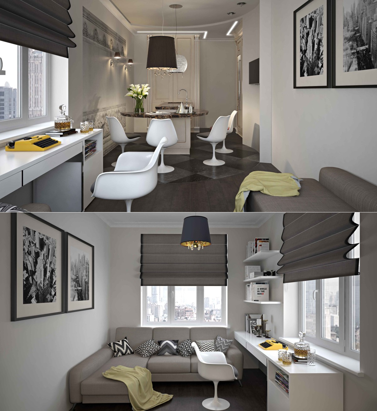 32 квадратных метра: спальня, кухня, гардероб, санузел и рабочая зона – Roomble.com
