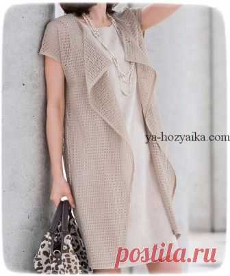 Модный жилет крючком схемы. Удлиненный жилет филейной сеткой