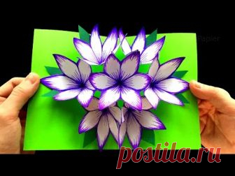 как сделать 3d открытку с цветами - цветы из бумаги - Открытка на 8 марта!