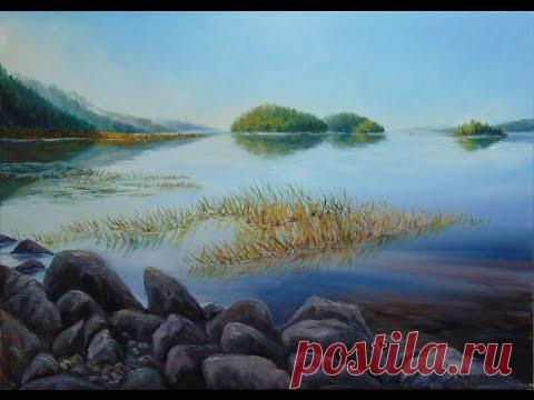 Пишем маслом туман,отражение в воде,камни.Живопись маслом Кругловой Людмилы