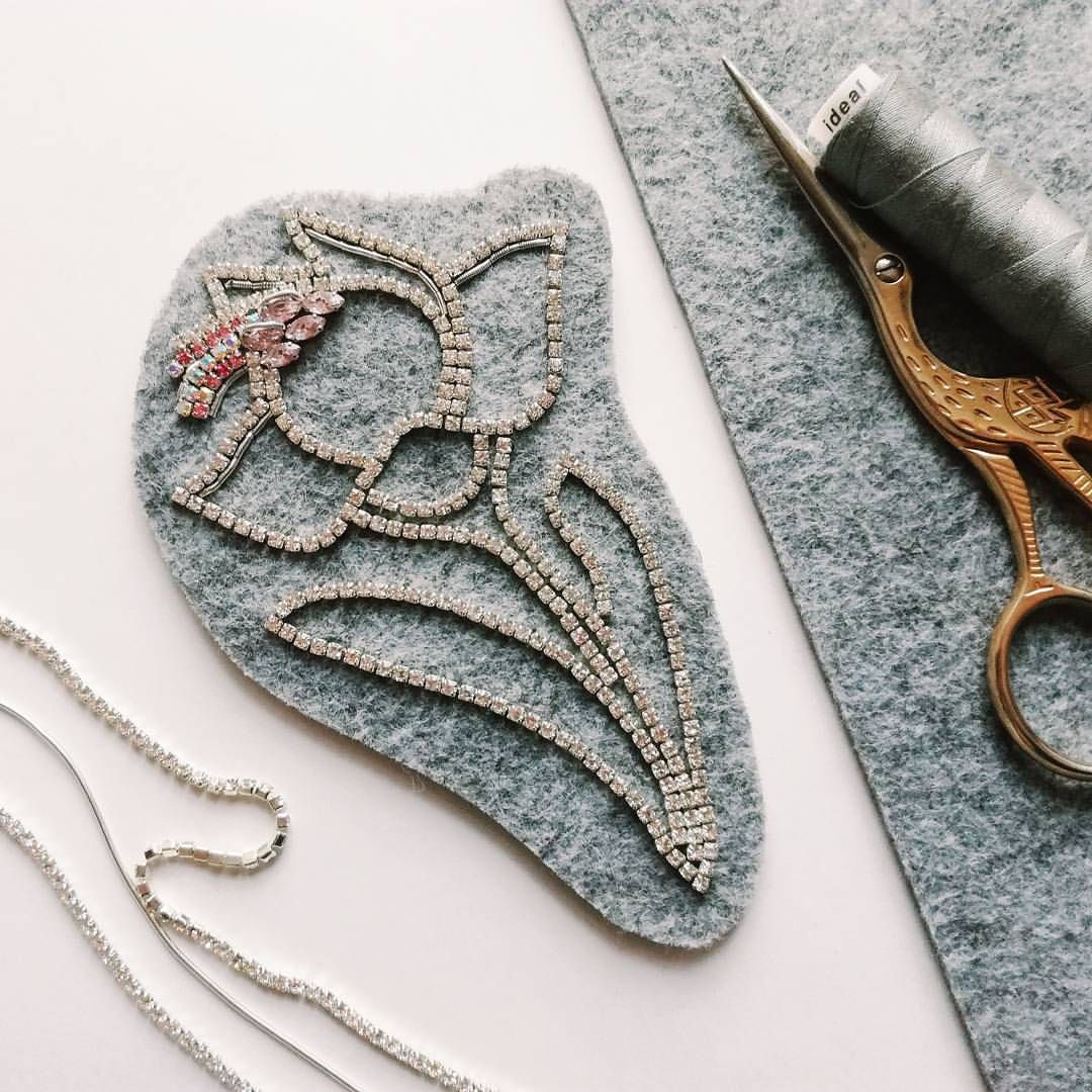 Для повышения уровня своих навыков я взяла в руки цепочку из страз и серебряную канитель с основой из прекрасного серого фетра и создала контур для… | Pinteres…