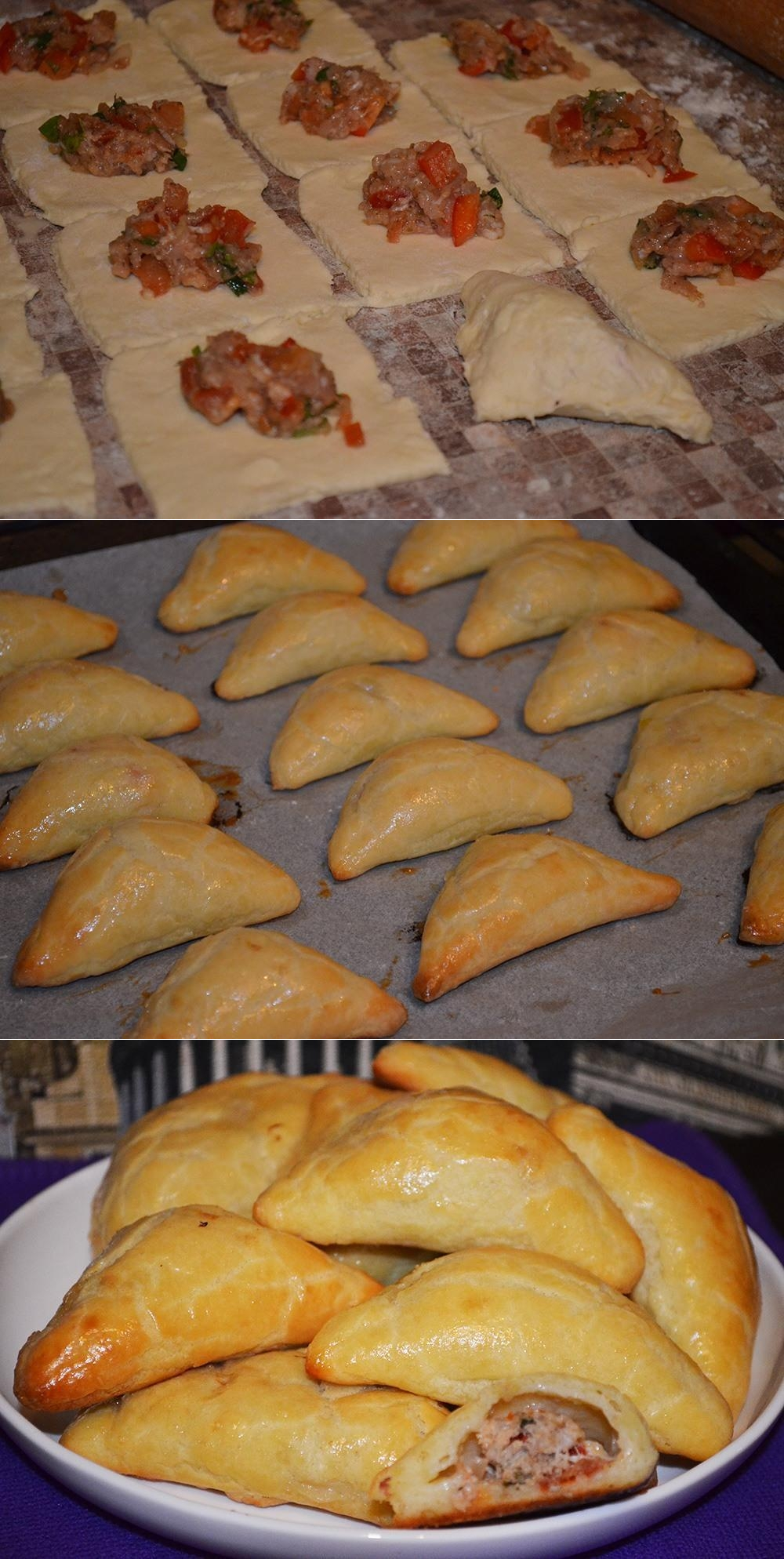 Как приготовить конвертики с мясом из творожного теста. - рецепт, ингредиенты и фотографии