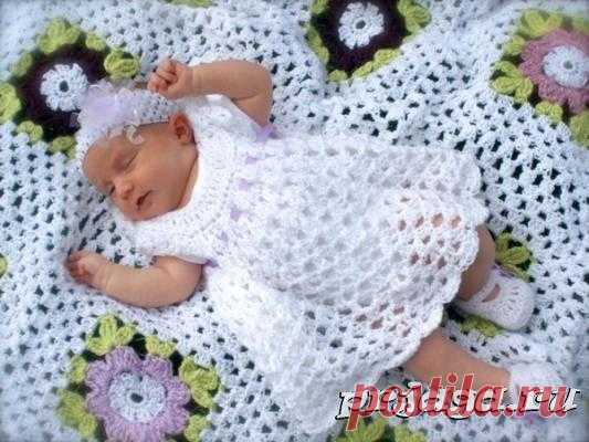Платье крючком для новорожденной