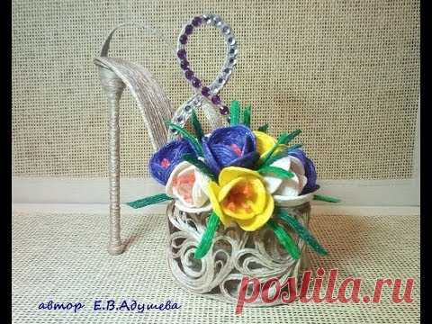 Готовимся к 8 марта. МК.Создаем туфельку из джута с крокусами.Джутовая филигрань.