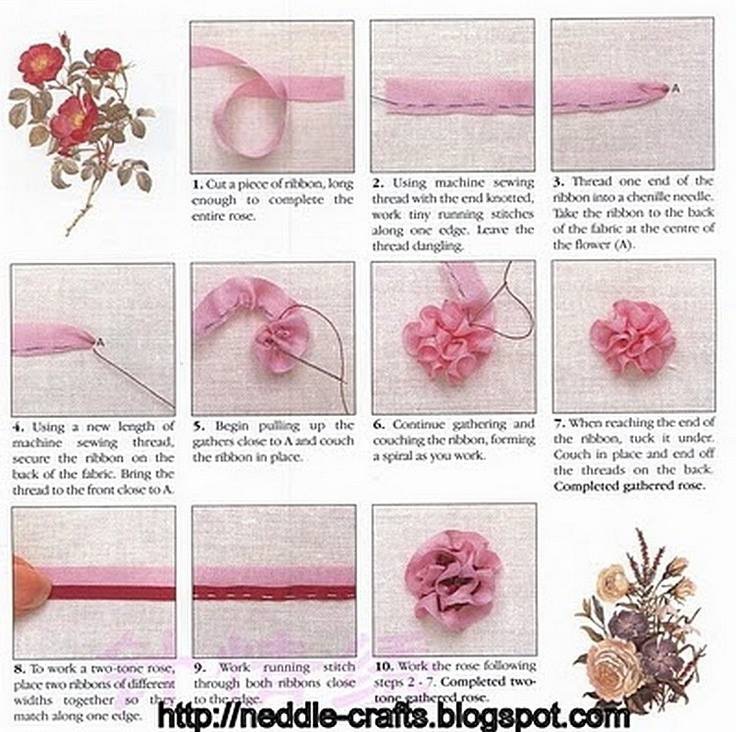 Gallery.ru / Фото #165 - διαφορ - ergoxeiro...Pretty ribbon rose embroidery tutorial...This is a great embellishment,and really fun to make!!