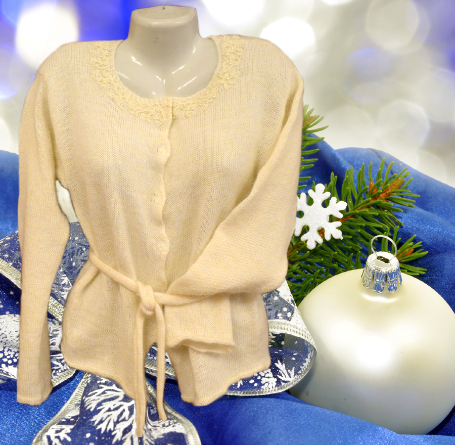 Кардиган из кид-мохера и мериноса, отделан итальянским кружевом из кашемира и хлопка.