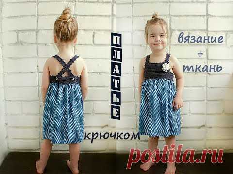Детское вязаное платье. Комбинированное платье крючком.Ткань, крючок.