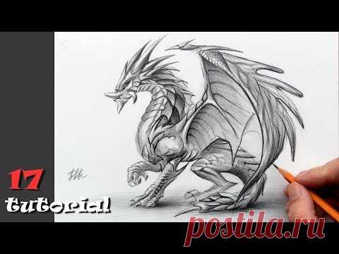 Как нарисовать дракона карандашом поэтапно. Мастер класс с объяснением.