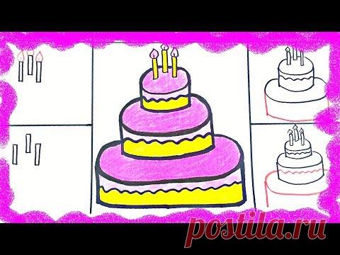 Как поэтапно нарисовать ТОРТ со свечками ко Дню Рождения?