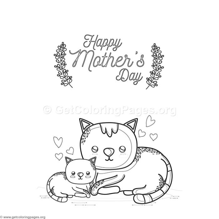 Cute Cartoon Cat Happy Mother’s Day Card Coloring Pages – GetColoringPages.org