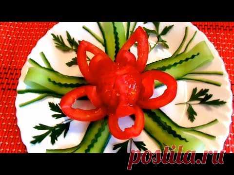 Красивый цветок из помидора! Украшения из огурца! Как красиво нарезать овощи!
