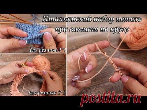 Итальянский набор петель при вязании по кругу для резинки 2*2 и 1*1