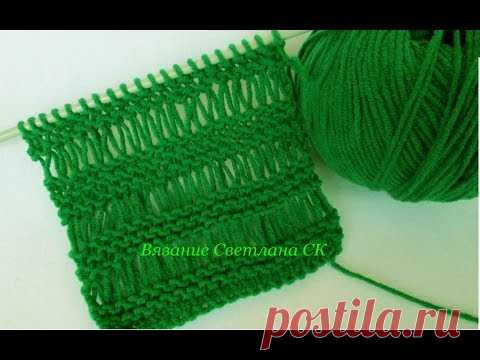Узор спицами двухсторонний спущенные петли