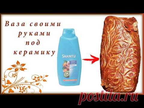 Красивейшая ваза из пластиковой бутылки. Объемный декор шпатлевкой.