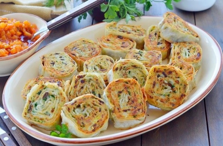 Как приготовить рулетики из лаваша с картофелем, грибами и зеленью - рецепт, ингредиенты и фотографии