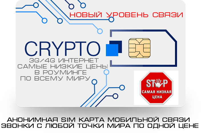 Анонимная сим-карта https://vk.cc/7WLPSn CryptoSIM это международный ВОСС (Виртуальный Оператор Сотовой Связи) позволяет Вам использовать интернет и голосовую связь во всем мире по низким ценам. Попрощайтесь с роуминговыми расходами и наслаждайтесь быстрым 3G-Интернетом в любой стране мира! Полная анонимность в сети и шифрование всех вызовов.