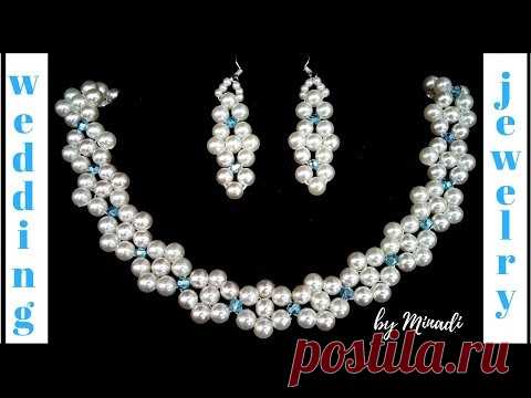 Beaded Bridal Jewelery Pattern. Wedding jewelry making. Pearl and crystal DIY necklace, earrings