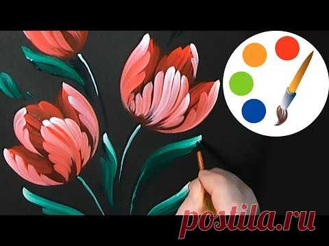🌷 How to paint a Tulip by a round brush, paint a flower